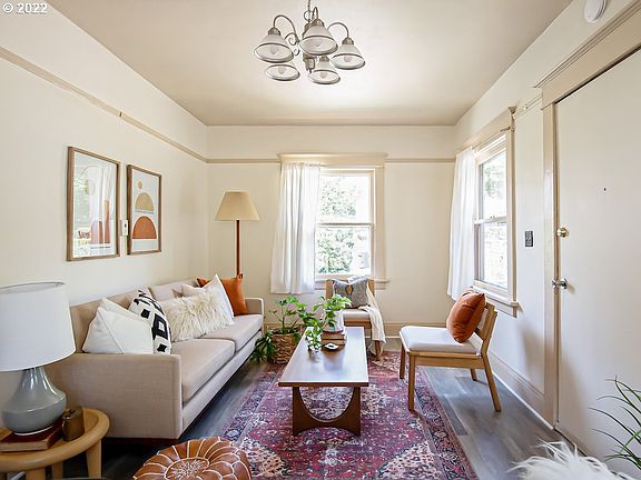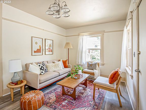 Adorable PDX bungalow in sizzling hot Sabin neighborhood! Covered entryway, vintage aesthetic, fresh interior paint, new LVP flooring in living room, picture rails, and lovely natural light. Dining area & open kitchen with marble counters and breakfast bar. Well-lit bedroom and vintage bath. Refinished wood floors throughout, a perfect 10 HES, & mini-split for climate control. Covered side deck and easily maintained yard. Basement storage. Blocks from Alberta St., Williams corridor, Fremont St. [Home Energy Score = 10. HES Report at https://rpt.greenbuildingregistry.com/hes/OR10204203]