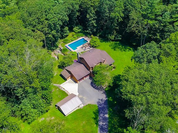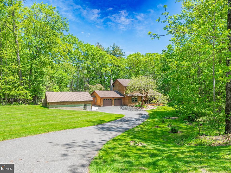Looking for Country Charm with MODERN updates? This cedar clad Colonial Home has everything and more, on over 2 ACRES of privacy with NO HOA on HOLE 4 of Indian Mtn Golf Course! Enjoy the summers on the patio under the pergola, within the heated inground POOL (with new liner), and fenced yard, or winters in the hot tub. Overlook your backyard privacy from the large deck and all season SUNROOM. The UPGRADED KITCHEN has cathedral ceilings with exposed beams, skylights, tons of custom cabinetry and storage, granite counters, tiled backsplash, center island, 5 burner induction stove and wall oven, and pantry storage. Open concept Family Room with wood burning fireplace, and hardwood floors flow through the main floor living spaces. Bonus 1st floor OFFICE or guest space, along with a 3rd full bath with barndoor, and laundry room. The second floor Primary Bedroom features CATHEDRAL wood ceilings overlooking the backyard, LUXURY updated bath with HEATED FLOORS, tiled shower with built-in niches and frameless shower doors, and walk-in closet with custom shelving system. Spacious bedrooms, updated baths, built-in bench seats, central vac and laundry shoot for all the cozy comforts of home. The spacious basement could be finished into more living space or currently make great storage and workshop area. Long paved driveway with plenty of parking leads to the 2 car attached garage, plus DETACHED GARAGE. Schedule your showing today and ASK HOW TO RECEIVE a $4,000 lender credit off your closing costs or interest rate!