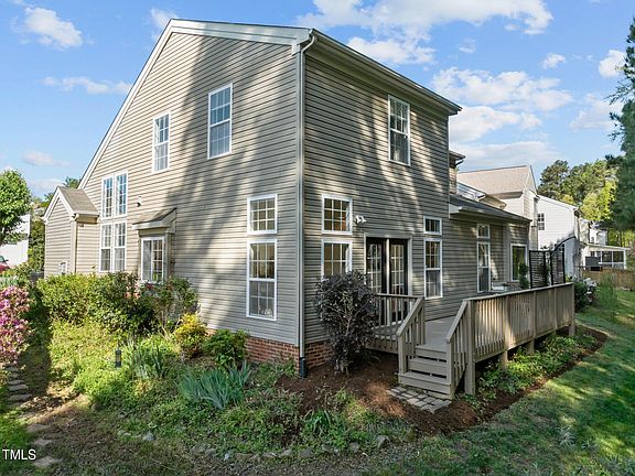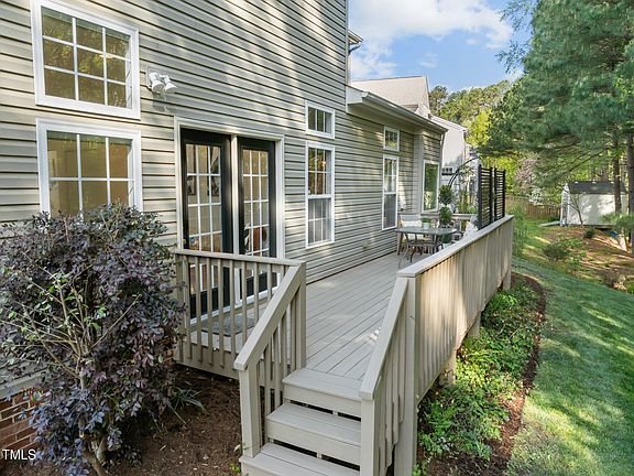 Light, Bright and Move-in-Ready! This 4 BR, 2.5 Bath home in SW Durham offers great living spaces AND a prime location! Primary suite on MAIN features a tray ceiling, an en suite bath with dual vanities, soaking tub and separate shower. For easy living, there's a 2-car, attached garage and a dedicated laundry room. Relax on your private deck - surrounded by trees - with a morning cup of coffee. Enjoy sitting by the fireplace in your open concept family room/dining room space that is filled with light from the many large windows. Cook and entertain in your large kitchen with ample cabinet storage, a pantry and an intimate dining area. If overflow seating is needed in the kitchen, there's room at the bar or at the built in storage bench. Upstairs you'll find 3 large bedrooms and a full bath with tub/shower combo. If you are looking for a home with large, bright spaces, ample storage, a garage, a private deck and located just 10 minutes to restaurants, shopping and I-40 - then your search is over. 1322 Pebble Creek Crossing is the perfect home for you!