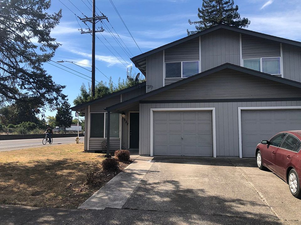 Located conveniently in Springfield, this duplex is light and bright, with 2 bedrooms and one and a half bathrooms. The living room flows into the dining area and has vaulted ceilings making it feel so spacious! There is a sliding door from the dining area to the patio in the fenced backyard. The kitchen has an eating bar, and ample storage in the under-stairs closet. New fridge and stove! Vinyl plank flooring throughout downstairs and carpet upstairs. New blinds throughout! Half-bathroom is off of the kitchen, with fresh paint, new back splash and faucet. There's a single car garage that has washer and dryer hookups. Upstairs are the two bedrooms, with roomy closets. The bathroom has a new back splash and faucet, new shower surround and the bathtub has been freshly resurfaced to look like new! This duplex has a ductless heat pump for energy efficient heating and cooling. Double paned vinyl windows throughout. No smoking permitted at all on the property and no pets! Call today for a showing or visit our website to apply! Application required for each person 18+. $45.00 non-refundable application fee. First full month's rent plus security deposit due at move-in.