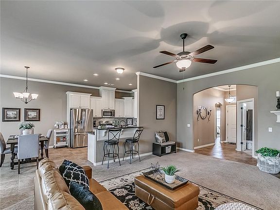 You will love this Great home in Cedar Lane with a park, fishing pond, and clubhouse with pool. Floorplan is incredibly versatile with 4 beds and Home Office/Study. Bedroom 4 is big at 17' x 10' and could be a exercise/play/media room. Amenities include 3cm granite, tiled hallways, large covered patio and outdoor living with firepit. The spacious living room is set away from the entry and features an inviting fireplace and open concept ideal for entertaining and holiday get-togethers. Stainless steel appliances, gas stove, and plenty of white painted cabinets offer the storage every great chef wants in a kitchen. The master suite has dual vanities, spacious shower and a soaking tub. Just a short drive to the OU Campus and Award winning Norman Schools. With so much to offer, Book your showing on this great home today!