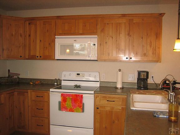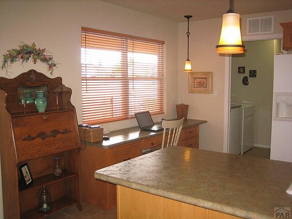 Wonderful 2 bedroom, 3 bath, 5 car garage home in move-in ready condition. Kitchen offers alder cabinets, all appliances, breakfast bar and large pantry. The living room is a very comfortable space with gas log fireplace and beautiful views. The dining area walks out to a large 11 x 31 foot covered patio, mature landscaping and views for the Pueblo west evenings. There is an over sized 2-car garage PLUS an over sized 3-car garage with work bench and shelving. The master bedroom suite includes an en suite, walk-in closet all window coverings and a large sitting area. The partially finished basement has one 1/2 bath and ready for your personal finishing touches. 5 car garages, WOW! The entire property is xeriscaped for low maintenance. Central air and all appliances complete this home.
