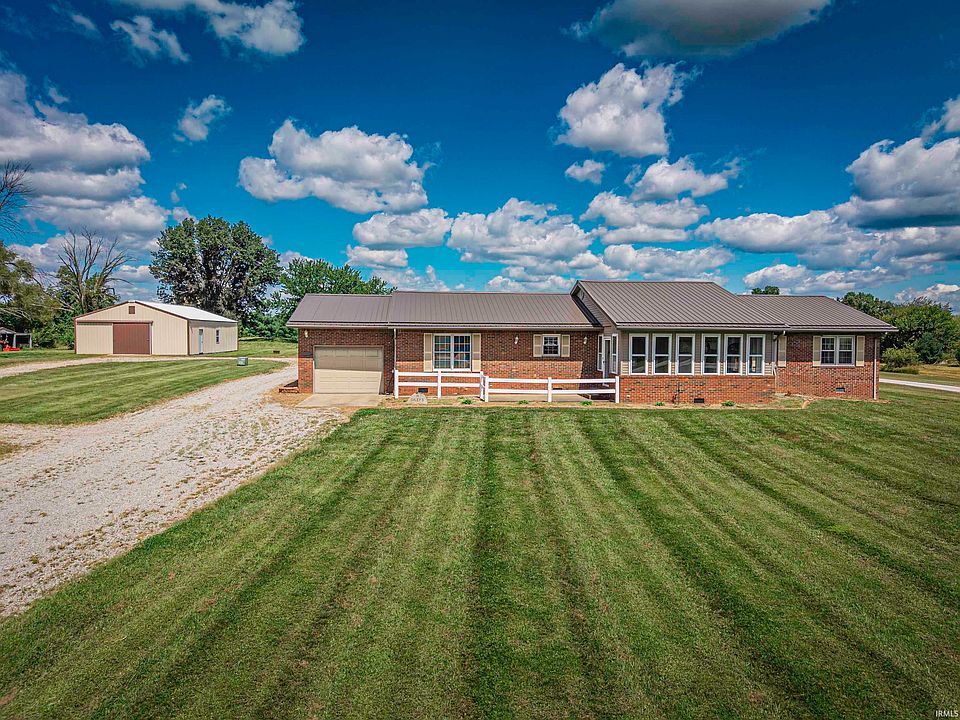 Brick ranch on 3.7 acres with incredible space and storage! This home offers generously sized living areas, including a spacious living room, family room, kitchen, and dining room—perfect for family gatherings and entertaining. The kitchen offers beautiful Amish-built cabinetry and features abundant cabinet and counter space. You will see that the primary bedroom is oversized and easily fits a king-size bed, while each additional bedroom offers plenty of closet space. There is also a bonus room on the front of home that offers ample sunlight. Additional highlights include a large pole barn with concrete floor, detached garage with two overhead doors and a massive mancave with its own entrance (garage is heated/cooled and offers a half bath), and a smaller storage barn. With space for work, play, and storage, this property has it all!