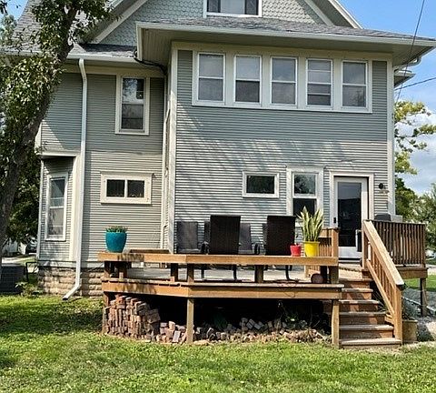 A classic Midwest four square home built in 1900 with all the charm and character coupled with all the current amenities today's living allows. The home includes 2,208 square feet of living space on the first two floors. The walk up attic has been converted to an en-suite complete with its own hvac system, three-quarter tile bathroom, walk in closet, and fireplace. The first floor includes a spacious updated kitchen and dining area. A formal dining room with built in buffet, a large living room, a newer half bath. The second floor includes four bedrooms, a sleeping porch and a completely renovated bathroom in 2018. The 3rd floor has been transformed into an en-suite with 3/4 bath and walk in closet. Two new large windows, a mini split heating/cooling system, complete the 3rd floor renovation. The home features hardwood floors throughout, new LVP flooring, new paint, and new light fixtures up and down. Roof and gutters new in 2021. Sewer line is new from street to house in 2017. Water heater new in 2017. Furnace new in 2015. Additional lot behind neighbor's to the south off alley measures 75 ft x 45 ft.