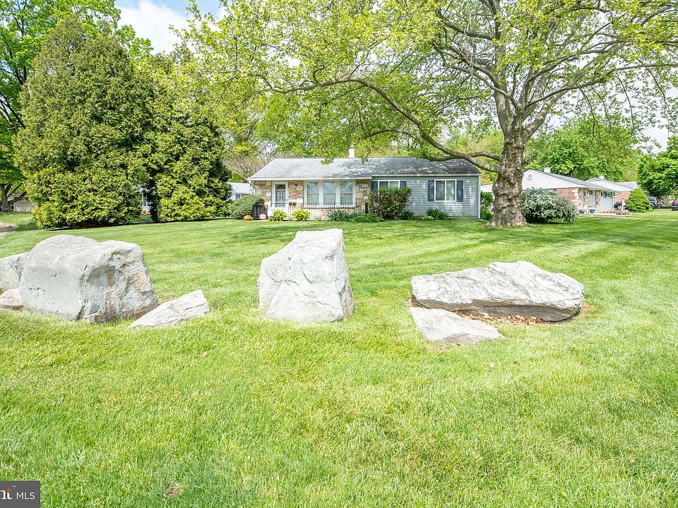 One floor living at its best! Come see this single Family home located in Roslyn, Abington School District. This corner property boasts a detached 2 car garage, along with gorgeous slate walkway leading to the front stone walled porch/patio. Enclosed with a wrought iron gate and the continuation of the slate flooring. Proceed into the sun filled, welcoming living room. This generous sized living space has a entry coat closet, wall of windows and area for dining/reading space the choice is yours. The full eat in kitchen is waiting for your personal touch to make it your own. Gas cooking. Beyond the kitchen is a full sized utility room laundry--complete with washer and dryer, cabinetry for additional storage. Exit door leading to the rear yard and garage. There is a large spacious Main bedroom with double closets. Hall bath with whirlpool tub, glass enclosed along with a hall closet. The 2nd bedroom has a ceiling fan and closet, Overlooking the living room is where the 3rd bedroom has been opened up and converted to a office/den. Easily converted back should you desire. Beautiful landscaped and maintained yard with mature trees. Large two car garage for additional storage, toys, tools and Cars. Conveniently located close to schools, shopping Hospital, parks and major roadways.