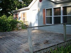 Very nice double wide with an RV shed & shop building. Large back deck 16 x 44. Lots of mature shade trees. Needs a little work.