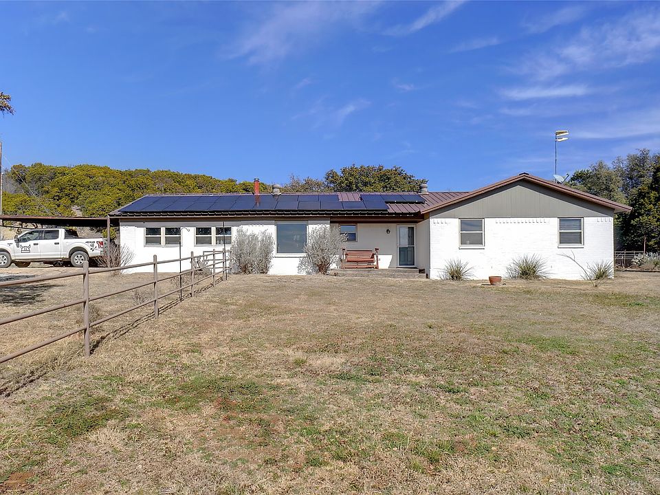 BEAUTIFUL HORSE PROPERTY. Experience the perfect blend of modern comfort & country charm with this beautifully remodeled 3 bedroom, 2 bathroom home nestled on 6.957 acres. The kitchen & dining area is a true showstopper, featuring sleek marble countertops with gray subway tile backsplash, farm sink, ss refrigerator, elegant & functional built in cabinetry & modern sleek open shelving. The spacious living room has a vaulted with beam, 2 ceiling fans & cozy wood burning fireplace creating the idea place for relaxation and cozy nights at home. The owner's suite & additional bedrooms have all been thoughtfully updated in modern colors, offering fresh finishes that enhance both comfort and style! Both bathrooms have been remodeled & have beautiful Cortez countertops; finished in neutral, versatile hues. Durable luxury vinyl plank flooring flows throughout adding both warmth & practicality. Outside, the property is perfect for horse & animal lovers & nature enthusiasts alike, featuring three large horse stalls, tack room, an additional workshop with electric, a steel storage container & RV carport. Whether you're enjoying the serene countryside views or making use of the ample space for hobbies & animals, this property offers a unique opportunity to embrace quiet, country living with contemporary amenities. Dewalt Z160 Commercial 60 inch Zero Turn Mower, Tools in shop, Refrigerator, gun safe, freezer & brand new; still in the box, Dual Fuel Westinghouse Generator, & water cooler stays with property. Solar will be paid off at close & has a $199 dollar transfer fee for warranty coverage and monitoring. Come and make this property your perfect, peaceful & private sanctuary.