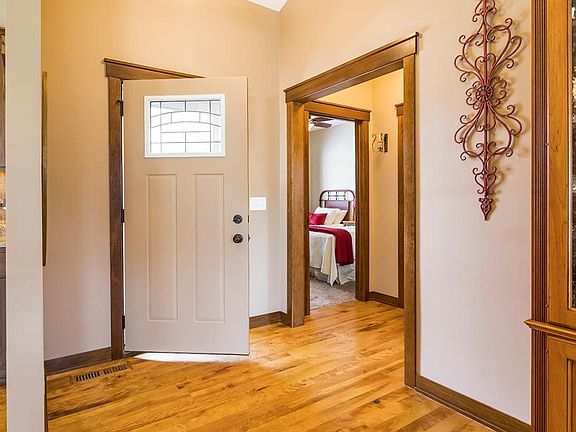 Welcome to this pristine Savage home! This place checks all the boxes of the most discerning buyer. You'll appreciate the design details both inside and out: the inviting front porch as your guests enter, the open-concept living space, yellow birch floors, brick fireplace and large windows with custom windowcoverings. The kitchen is finished with granite countertops, soft-close custom cabinetry, undercabinetlighting, and walk-in pantry. The ensuite master is spacious, has Jack and Jill sinks, a beautifully tiled shower, and large walk-in closet leading directly to the laundry room! This is truly one-level living. Head out to the back yard and you'll find this .44 acreage lot offers privacy in a beautiful setting with deck, paver patio and firepit. This home is perfect for entertaining indoors and out. The basement has a family room and games area finished with luxury vinyl flooring, another brick fireplace, a third bedroom, abundant storage and it's plumbed for your new wet bar!