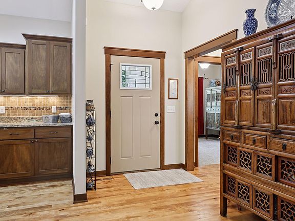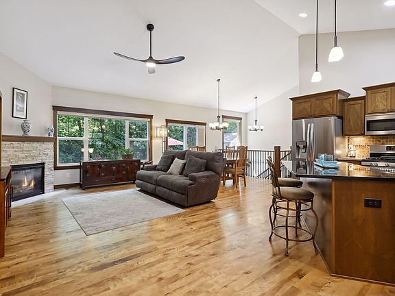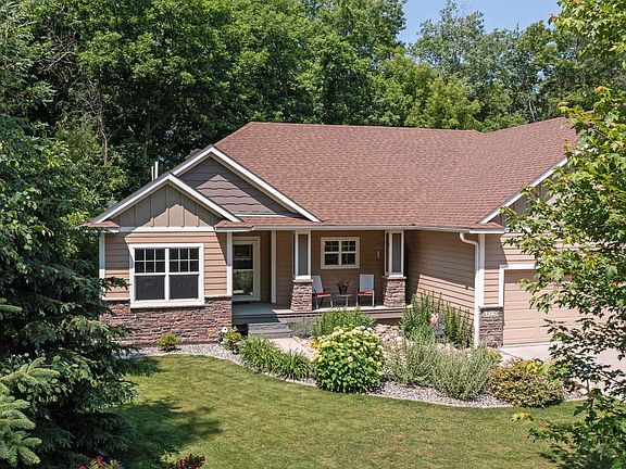 Welcome to this stunning Savage home! Situated on a .44 acre wooded lot, attention to detail is unmatched both in and out. Step through the front porch to open concept, one-level living. Kitchen, dining, and living room with gas fireplace flow together making this home perfect for entertaining. Sliding doors in the back of the house lead to a deck, paver patio, and firepit. The kitchen is complete with granite countertops throughout, a center island, and full pantry. The spacious primary bedroom with 10' vaulted ceiling faces the private backyard and has an ensuite with dual sinks and a full tile shower, along with a huge walk-in closet that walks through to the main level laundry room! Completing this level is another full bathroom and bedroom. The lower level offers an expansive family room with a cozy gas fireplace, ¾ bathroom, and third bedroom. Basement is also plumbed for a wet bar. No shortage of storage in this home. Attached 3-car garage which is plumbed & ready for heater.