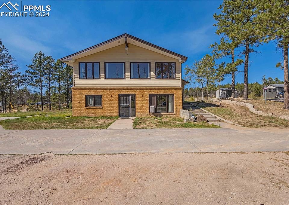 Welcome Home to the heart of Black Forest! This unique property sits on 4.77 acres with dead-on views of Pikes Peak! There are 103 living trees on the property, and the lot has perfect drainage with water run-off adjacent to the property that actually functions as running water during rainy season! The home is just steps from the local Farmers Market and all the wonderful amenities that Black Forest has to offer. This lot is fully fenced, including a stunning front gate that makes a dramatic first impression. The property has an oversized three car detached garage, two storage sheds, and a huge circular roundabout driveway that make this lot truly one-of-a-kind. The Septic System is less than a year old, and the property is in the unincorporated section of Black Forest- which is very powerful for STR opportunities. The home itself has a unique and powerful floorplan that features 4 bedrooms and 4 bathrooms. The unique functionality comes with the two separate entrances- which would allow for this home to be easily broken up into two very livable units that would both feature 2 beds and 2 baths. The upper unit is ready to go- with about 1900 square feet, newer carpet, GORGEOUS tile flooring that has been installed recently, and stunning tongue-in-groove ceilings and wall finishes in the area that features the Peak views. The lower level also has a fireplace, and Kitchen space, with a very easy layout to be finished and turned into value right away. This is a wonderful opportunity in Black Forest- come check it out and be wowed!