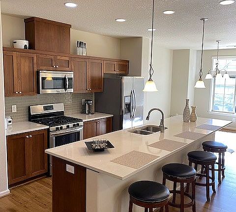 Elegant French-style townhome in the fantastic River Terrace master planned community! Open floor plan with great flow features "light and bright" living room w/ cozy fireplace, laminate "wood" throughout main level, spacious kitchen with HUGE quartz island + countertops! Master w/ walk-in shower + dual vanity! PLUS tech area perfect for a home office! Minutes to Progress Ridge. A/C installed in 2019