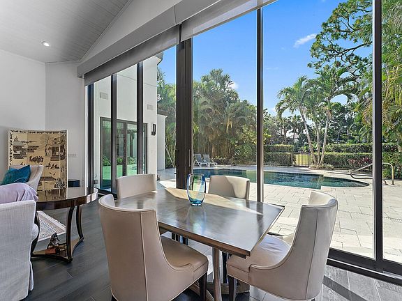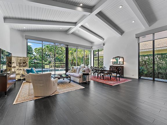 Move into a fully-renovated dream home and just enjoy. Volume ceilings, light-filled rooms, open-concept designer kitchen and family room, overlooking a lush backyard, electric outdoor awning, pool and golf course. New kitchen appliances, California closets and 12 ft impact glass sliders. Electric blinds. Master bath soaking tub. Located in the luxury community of Frenchman's Creek Beach & Country Club with a full service beach club, 36 holes of golf and spa life.