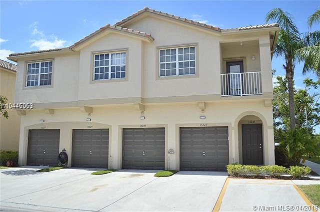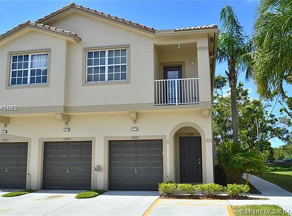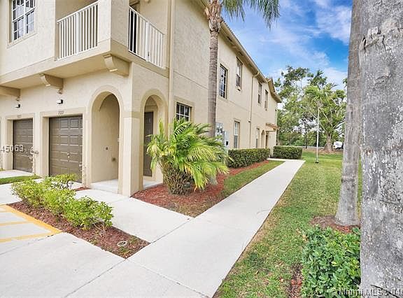 Almost New two story corner townhome style condo with garage on 1st floor in the sought after Silver Falls community close to Miami/Broward county line! This charming 2 bedroom 2 bath home is extremely well maintained! Appliances are in like New condition! Upgraded laminate flooring on stairs, light tile floor in main living area and super clean carpet in bedrooms. Front loading full size washer & dryer in unit. Huge walk-in master bedroom closet, Romeo & Juliet type balcony over looks front entryway so you can greet your guests! Well maintained association with community clubhouse that features, pool, gym, rental party room, basketball & tennis courts, tot lot that is included in the association dues along with front gate and roving security, upgraded cable, water, trash, exterior & roof!