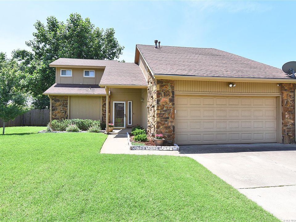 Spacious home in park plaza east III! Primary suite, and one bedroom down, 2 beds and full bath upstairs. Union School District. Excellent yard layout with full privacy fencing. Brick and stone exterior, outdoor lighting, full guttering. Open living area, balcony overlooks den. Recessed lighting in kitchen. Monitored security system with indoor and outdoor cameras! Mature Trees, including gorgeous Tulip Tree! Don't miss it!
