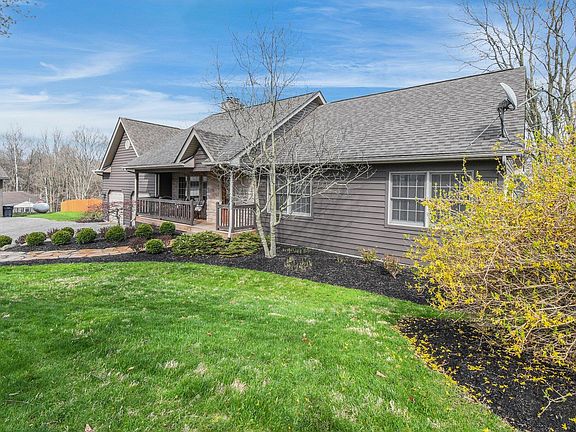 There is so much to enjoy about this lovely ranch home situated on 2.28 private acres. Stunning HW floors, open spaces & many large windows offering sunlit rooms & great views. Vaulted great room with a floor to ceiling stone fp. Spacious kitchen with ss appliances & a breakfast bar. The generously sized dining area accesses the expansive deck. 3 FF bedrooms, including an owner's en-suite. FF laundry w/ washer & dryer. Inviting open staircase leads down to the extensively finished lower level that has a family/rec room with a gas fp, 4th bedroom, bathroom & ample storage. Updated light fixtures & fresh, neutral colors. Outstanding fenced yard w/ a deck & paver patio. Charming front porch. Deep 2+ car attached garage & large, detached 2+ car outbuilding. Newer HVAC & HWT.