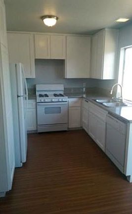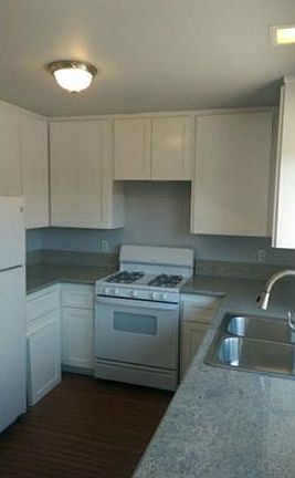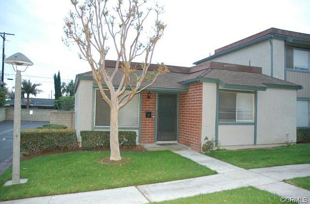 2 bedroom 1 bath single story end unit with 2 car garage and small yard with patio in nicely maintained community.Brand NEW: paint, laminate, kitchen appliances, bath and kitchen fixtures, granite counters, baseboards and more. Community offers a lovely pool and clubhouse and play area. Centrally located in Orange County with easy access to freeways. Small enclosed patio provides direct access to 2 car garage. Quiet location in the back of the complex.