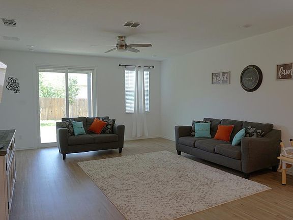 This stunning two-story home features an open floor plan designed for modern living. With 3 spacious bedrooms, 2.5 bathrooms, and a 2-car garage, the home offers both comfort and functionality. The island kitchen with gas cooking is perfect for entertaining, while high ceilings add an airy, elegant feel throughout the main living areas. The primary bedroom is conveniently located downstairs for added privacy, and a large game room upstairs provides extra space for relaxation or fun. Enjoy the outdoors in the privacy-fenced backyard-ideal for gatherings or quiet evenings at home. Easy access to IH-10 and Loop 1604. Minutes to Randolph Air Force Base and Fort Sam Houston.
