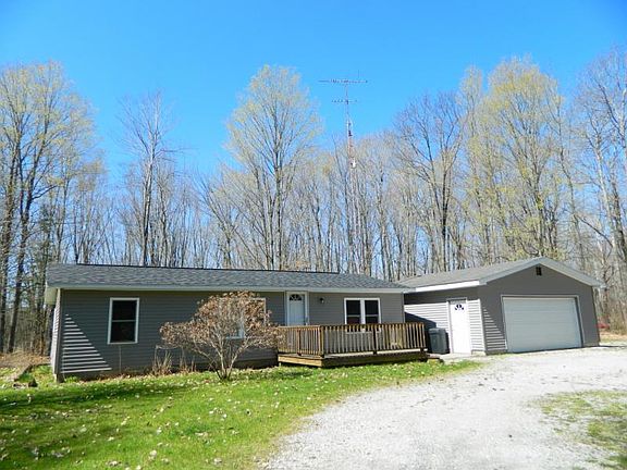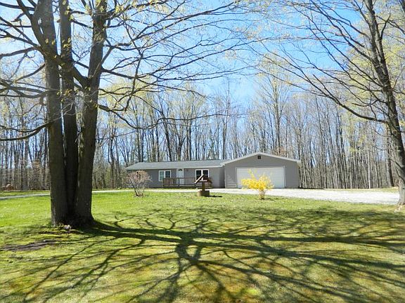 COUNTRY LIVING AT ITS BEST! 3 BR, 2 BA; 1986 Manufactured Ranch home, nestled on a colorful wooded lot offering 1 1/2 Acres. 2 Car detached, 24 by 24 drywall, finished and insulated garage. 1,160sf of open living space with maintenance free vinyl siding. Open Kitchen/Dining has plenty of counter space and cupboards. 6 foot door-wall opens to large 19 by 10 bonus family room that leads to back concrete patio. Both Bath's have been updated with Tile and Granite Countertops. All appliances are included: stove, refrigerator, washer & dryer. 5 by 5 laundry conveniently located just off the kitchen. New Roof, New Well and New Siding 2014. Perfect spot to enjoy privacy, wildlife and peace and quiet. It's so nice having everything on one level. This home has so much to offer; located just off US 23. Local Restaurants, Grocery, Post office and Gas Station within minutes away. Elementary school within 1 mile. Country living with all the amenities of Alpena just 20 minutes away.
