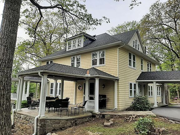 Find peace and tranquility in this home, built after 1898, that’s rich with history and nestled in the Blue Ridge Mountains. It was once part of the summer homes surrounding the former historic Buena Vista Springs Hotel; a hotel that served as a retreat from the city life for the affluent socialites of DC, Baltimore, and surrounding areas that included vice-presidents, senators and the like. In 1933, Mrs. Woodrow Wilson spent the night as an honored guest in this very house. You, too, can be a part of history when you choose to call this your home! This four-square home offers 4,062 sqft of living space with 6 bedrooms, 5 full bathrooms, 1 half bath, and 6 wood-burning fireplaces. Situated in a park-like setting with approximately 1.5 acres and multi-tiered blue slate patios. First level: Sitting room and large living room, both with a set of French doors leading to the covered patios. Living room boasts a beautiful rock fireplace, large windows, and built-in bookcase. Powder room with a stained-glass window. Dining room with a floor-to-ceiling stone fireplace. Spacious kitchen equipped with double wall ovens, an island with a flat top range, lots of cabinet and counter space, brick fireplace, and the original “dumb waiter” that still functions. Laundry room, pantry, space for a second refrigerator/freezer, and a separate mud room are also on the first level. Bedroom/office with private bathroom attached are both wheelchair accessible, as is the living room and dining room. Second Level: 3 large bedrooms, each with their own full bathroom and fireplace. The Master Suite has a sitting room, fireplace, walk-in closet, and separate from the full bath is a 5’ dry vanity area with lots of storage underneath and rough-plumbed for the ability to add a 2nd sink. Third Level: 2 bedrooms, bonus room, full bathroom, a huge walk-in cedar closet, and lots of extra storage areas. Additional features: Detached 2-car garage, portico over the front door/porch, beautiful stone walls, massive stone chimneys, an original outdoor kitchen, and lots of mature trees and landscaping. New HVAC system installed 2021, hardwood floors recently refinished on 1st and 2nd levels, and 9’ ceilings on 1st level (not including the kitchen). Conveniently located in Pennsylvania but only minutes from Maryland.
