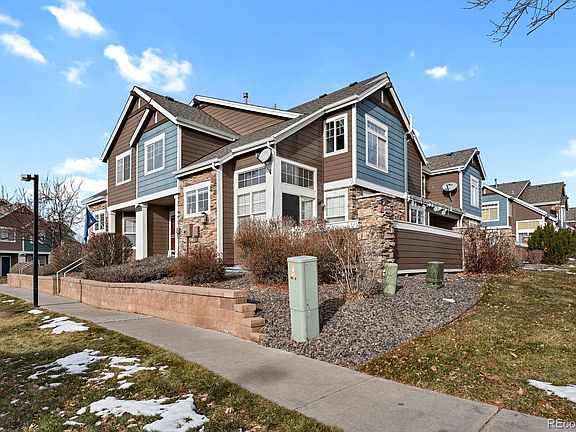Welcome to this gorgeous sunlit end-unit townhome with an open floor plan that is move-in ready with all appliances included and available for quick possession! The main level includes an open floor plan with vaulted living room with gas log fireplace; EZ maintenance vinyl plank flooring (2021); dining room with stylish chandelier; a spacious kitchen with tiled floor, oven/range; newer refrigerator, microwave and dishwasher; pass-through window to the dining room; powder room; closet; and doorway to the 626 SF basement (with the included washer/dryer hooked up) awaiting your finishing touches. New water heater installed November 2022, plus newer refrigerator, dishwasher, microwave oven and window blinds. The second level includes a good-sized carpeted primary bedroom with dual closets; secondary bedroom plus a full bathroom that is also accessed from the primary bedroom. Stylish colors throughout. The sliding door accesses a fenced private outdoor patio space. This attractive property includes a detached 1-car garage (#27) located nearby plus one additional unassigned parking space. The cozy Old Farm HOA community offers mature landscaping; a playpark; and owner-friendly monthly HOA dues of $246 that cover water/sewer; insurance; common area lighting, exterior/roof/gutter cleaning/grounds/fence/irrigation maintenance; trash/snow removal; and professional property management. This property is turn-key; move-in ready and available for quick Closing. Make sure to visit the Trail Winds Recreation Center website for information on activities Thornton residents are eligible for at very flexible fees! Aquatics, volleyball, pickleball, basketball, climbing wall, walking/running track, childcare, and more at very reasonable fees! And it's located less than 1 mile away! Website: https://www.thorntonco.gov/recreation/facilities/Pages/trail-winds-recreation-center.aspx. Come visit and you'll be impressed with this property and community!