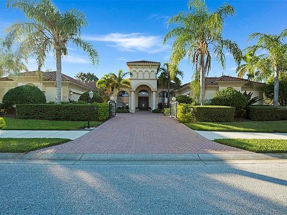 Poised on an oversized home site in the gated Country Club of Lakewood Ranch, this custom-built Anchor masterpiece is nestled among mature, manicured landscaping that offers complete privacy on a wooded preserve. The stunning exterior sets the stage for luxury finishes & rich architectural details throughout over 4,300 square feet of open living spaces on one level. The living and dining rooms showcase tray ceilings, neutral tile floors, gas fireplace, custom built-ins and sliding doors that open to the impressive outdoor entertaining areas. The gourmet kitchen boasts granite counters, decorative backsplash, quality wood cabinetry, stainless appliances, center island & walk-in pantry. The breakfast bar unites with the casual dining and family room with 90 degree disappearing sliders to the lanai. Offering a respite from the ordinary, the spacious master wing offers sitting area with bay windows, private door to the lanai and large his & her walk-in closets. The luxurious bathroom features separate vanities, marble counters, large walk-in shower and soaking tub. There are 3 additional guest bedrooms, 2 full baths, an elegant powder bath, and a handsome office/bonus room with wet bar and sliders to the lanai. The expansive outdoor living space is nothing short of spectacular with sparkling heated pool and spa, outdoor kitchen and grill, covered entertaining areas and lush preserve views. Additional upgrades include private gated driveway, oversized split garages, extensive moldings, central vacuum, plantation shutters and solid wood interior doors. Residents of The Lakewood Ranch Golf & Country Club are just minutes from excellent shopping, dining, medical facilities & I-75, for an unparalleled lifestyle defined by relaxation and recreation.