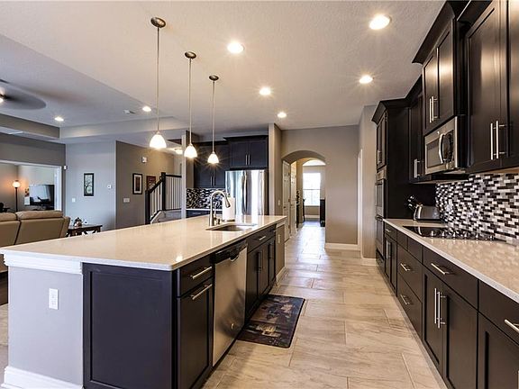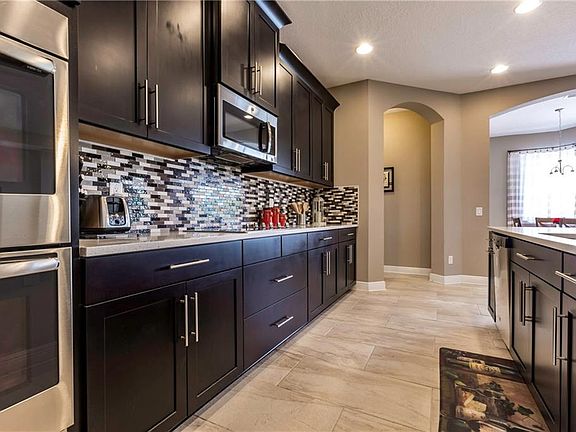 Upgrades Galore with Pond View in Gated community! This home is an exquisite 4 bedroom 4.5 bathroom home including a media room, a bonus room, and a den. The chef of the family will enjoy plenty of quartz countertops, stainless steel appliances, dual ovens, a butler's pantry, and a huge island that opens to the family room making this home perfect for entertaining. The large guest suite includes private pool bath. The 3-car tandem garage is perfect for storing all your extras. Upstairs, you will find in a massive game room and separate media room/home theatre. The owner suite includes a walk-in closet, separate sinks, a garden tub to soak your troubles away after a long day, and a separate walk in shower. Outside you will find an extended covered lanai with HEATED SPA pavers, zoysia grass, fenced in yard, and AMAZING sunset views overlooking the pond. Additional upgrades include a heated spa, gutters, pavers, stone on the exterior front, water softener, custom window treatments, and oversized tile. Make an offer today before this one is gone!
