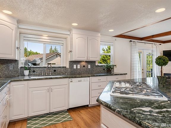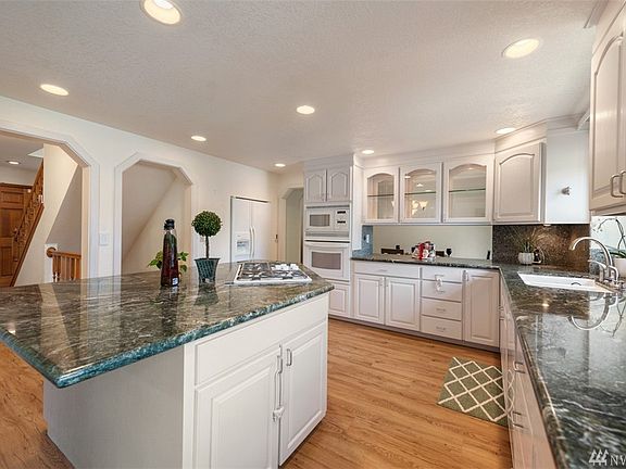 This charming three level home is nearly 3,000 square feet with a fully finished basement. Stunning kitchen leading into the formal dining room. High end details like granite counters, custom lighting, gas fireplace & french doors make this home complete from top to bottom. Huge rec-room & bonus rooms for extra space. Close to shops, highway access & businesses. New furnace, carpet and laminate flooring. Beautiful tall cedars line the house w/ personal greenhouse & gardening beds.