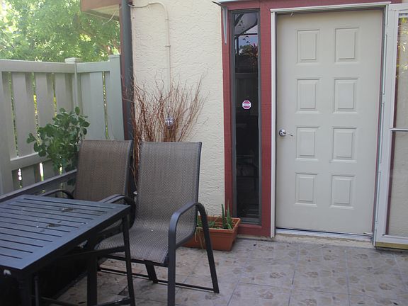 Beautifully maintained and updated 3 bedroom, 2.5 bath home with a detached garage! Upgrades include stainless appliances, laminate flooring even on the stairs, beautiful backsplash, Murphy bed in downstairs bedroom and more! The screened lanai looks over an expansive landscaped area and the entire complex is currently undergoing a complete facelift including new siding and paint. Enjoy your privacy on your privacy fenced screened in lanai or a sunset on the balcony off the upstairs master suite. This property will not last!