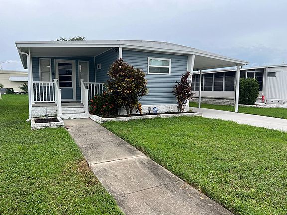 NEW LOWER PRICE! Location, location, location! Four Seasons Estates, a respected 55-plus community in Largo, offers the ultimate blend of lifestyle and coastal living. With its prime position just two miles from the sparkling Gulf beaches and only minutes from churches, restaurants, and shopping, everything you need is close at hand. Two major airports are only 30 minutes away, making travel seamless-ideal when using this 2-bedroom, 1.5 bath home as a winter retreat. Residents enjoy a vibrant social scene at the clubhouse, unwind by the heated swimming pool, and enjoy lakeside fishing or a game of shuffleboard. Best of all, for just $733.00 a month, your lot rent includes water, sewer, garbage, and lawn care, allowing you to enjoy worry-free living in a community designed for connection and peace of mind. INTERIOR: Walk through this renovated residence, which features updated drywall, updated windows, recessed lighting, new doors, central heating and air conditioning, as well as laminate flooring. Ceiling fans are installed throughout, and the split floor plan affords privacy and convenience. Furniture may be negotiated, presenting an excellent opportunity for turnkey occupancy. The totally remodeled kitchen is equipped with new cabinets and new countertops with stainless steel appliances and incorporates a fitting breakfast bar. Offering 672 square feet of comfortable living space, the home also integrates a raised Florida room of 200 additional square feet, presently used as a living area. The guest bedroom provides a half en -suite bathroom and a closet with stackable washer and dryer units, while the rear bedroom features three closets and utilizes the main bathroom, which has been updated with tiled walls and a tiled shower. Both bathrooms have been fully modernized. Trendy barn doors dress up this stunning home! EXTERIOR: This pleasant residence features durable vinyl siding and a welcoming front porch, ideal for enjoying conversations with neighbors and friends. The fenced rear patio provides a private area suitable for entertaining or relaxation, while the spacious two-car carport offers functional, covered vehicle space. Additional storage is available through an extended shed with a sliding door, and the landscaped grounds enhance the home's overall curb appeal. Priced at $49,500, this property presents an excellent opportunity for ownership with both potential and distinctive character. Call to make an appointment for your private showing!