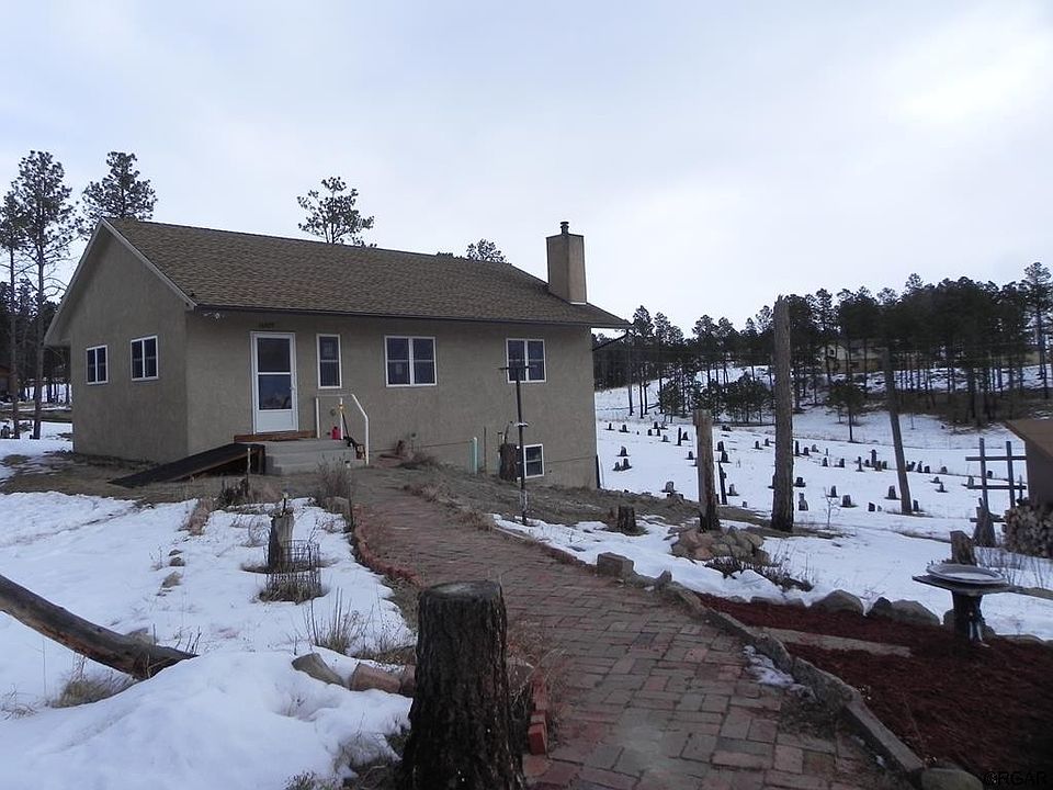 3 Bed, 2 bath home on almost 5 acres in Black Forest. Beautiful wood floors on main level, 4 ft. Stairwell going down to the walkout basement. Wood burning stove in basement will heat the entire house and has a cooktop on it perfect for when the electricity is out. House is in the burn scar and charred trees have been cut down and stacked for use in the wood stove. Pikes Peak can be seen from the property. There are two sheds for storage and a wood shed. Plenty of room to build garage/shop/barn. Bring the animals! Take a look at this nice home in Black Forest!