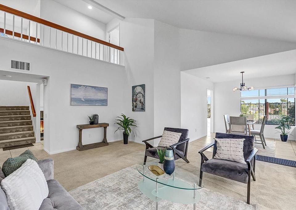 This home is on a quiet street with nearby parks, schools and shops. Inside the front door, you will find a lot of natural light welcoming you. The first floor boasts a vaulted ceiling living room, formal dining room, office (or bedroom), bathroom with shower, laundry area, and a charming family room that opens to the kitchen with a built-in wet bar area. When you step onto the second floor there is a hallway with built-in cabinetry and with an open view to the living room. The master suite includes a picturesque view overlooking the surrounding neighborhood, a cozy fireplace, a separate shower/soaking tub, and a walk-in closet. This home also features all new paint inside, newer garage door opener and spring, updated kitchen with quartz countertop and white cabinets. Roof underlayment replacement was done in 2018. Seller also installed energy-efficient LED recessed lights throughout the family room and kitchen. A private, peaceful, view backyard and outdoor patio makes this property ideal for hosting gatherings or simply enjoying quality time with loved ones. Alta Mar neighborhood offers a scenic walking greenbelt with panoramic ocean views. When walking or jogging along the path, you can enjoy the fresh ocean breeze and nature. Situated in close proximity to One Paseo and Del Mar Highlands Town Center shopping and dining district, you have an array of options for delicious cuisine, trendy boutiques and entertainment that caters to every taste. The community also offers convenient freeway access, multiple award-winning Elementary, Middle and High schools. This home is a real hidden gem - come by and check it out.