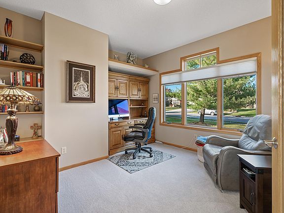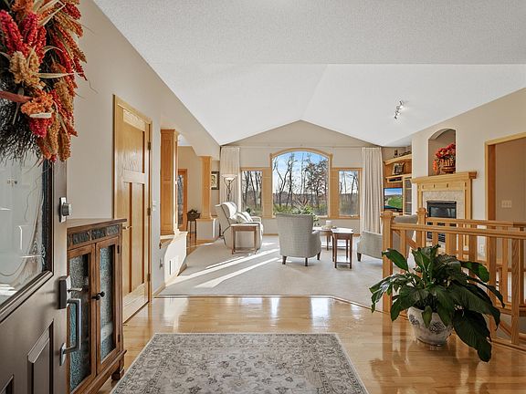 Welcome to this impeccably maintained home nestled in the desirable Windsor Hills neighborhood. One of the property’s most captivating features is the breathtaking view of the backyard’s serene water feature and private wetlands, best enjoyed from the screened porch or expansive deck. Upon entry, you’re welcomed by a vaulted great room where large arched windows frame stunning backyard vistas. The living room centers around a cozy gas fireplace and built-in entertainment nook, creating an inviting atmosphere. This thoughtfully designed rambler offers convenient one-level living with exceptional craftsmanship throughout. The main level includes the primary suite, laundry, kitchen, and living room—all easily accessible. The sunlit primary bedroom features a spacious ensuite with a separate soaking tub and shower. The kitchen is both functional and stylish, featuring stainless steel appliances, a gas range, ceramic tile backsplash, granite-topped center island, real oak hardwood flooring, an abundance of quality Hickory shaker-style cabinetry and a charming corner window provides picturesque backyard views. Adjacent to the kitchen is a versatile command station and a main-level flex room—currently used as an office—ideal for remote work or personal hobbies. The lower level expands the living space with a generous family room, complete with a stone-faced gas fireplace, raised hearth, and mantel. A dry bar with a beverage refrigerator adds convenience, and the walk-out patio with pavers offers a perfect setting for outdoor gatherings. Two additional spacious bedrooms and a well-appointed bathroom complete the lower level. The bathroom includes a double-sink vanity, two linen closets, and a separate area for the toilet and shower for added privacy. Located in one of Elk River’s most sought-after neighborhoods, this home offers proximity to scenic trails, a nearby golf course, and is just a short five-minute drive to downtown Elk River with its charming shops, restaurants, and riverfront amenities.