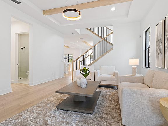 Experience luxury living! This NEW CONSTRUCTION, never occupied 5 bedroom, 4 bathroom residence exudes sophistication as soon as you step into the door! Oversized gourmet kitchen with GE Monogram appliances, gas cooktop, 3'' Cambria Quartz Island Countertop and oversized walk-in pantry! The owner's suite includes stunning lake views with coffered ceiling, luxurious appointed owners shower with two spacious walk-in closets. This home additionally features faux wood beams, the same upgraded flooring throughout, an abundance of natural light, large loft for upstairs living and first floor guest bedroom with a full bathroom! Oversized first-floor lanai over looking the beautiful lake for the ultimate indoor- outdoor living experience with ample space for your dream pool and spa! The upscale community of Artistry is gated with armed security, clubhouse with fitness center, event space, luxurious pool, walking trails, playground and sport courts.