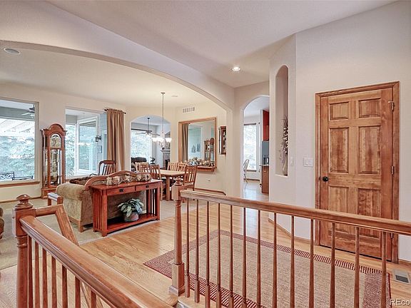 Immaculate ranch meticulously maintained & upgraded by original owners! It was one of Model Homes with all the extras & quality afforded a custom home. Located across from Trail Winds REC Center, park & open space with walking paths for your enjoyment. The bright & airy home features 10' ceilings throughout and newer interior paint. The welcoming entryway into the home has hardwood floors which looks into the spacious Living and Dining areas & features floor to ceiling windows looking out onto the covered patio and lovely yard. The Family Room has a beautiful gas fireplace and features a mantel above it. The kitchen has abundance of cherry cabinets & large center island with beautiful granite countertops and "Slate" smudge proof appliances including microwave, dishwasher, smooth top range with convection oven and French door refrigerator. The spacious eating area in Kitchen is bright and the hardwood floors glisten. Utility room off kitchen has washer & dryer that are included. The Master Bedroom is beautiful & Master 5 Pc. bath with jetted tub has been upgraded with new shower tile & seat & custom clear shower door, updated faucets & new floor tile. You'll love the huge walk-in closet. There are special designer features in each room including the bedrooms with custom draperies & moldings. One of the bedrooms, has been converted to "In Home" office with custom cherry bookcases and desk area (the closet could easily be swapped out for the Office built-ins for use as a bedroom again). The 3rd bedroom has a walk-in closet with unique custom crown molding, etc. Some of the upgrades include: Brand new HVAC system, Anderson windows throughout, 2 Yr old Class 4 Roof (get that credit from insurance), water softener & filtering system, newer upgraded carpet, covered patio and enlarged paver stone patio & pergola with firepit, 6 panel stained solid wood doors with updated hardware. Don't forget the low tax rate on this home with mill levy of .90611!
