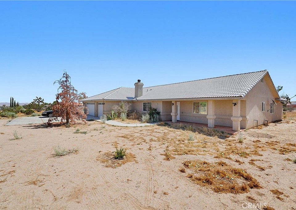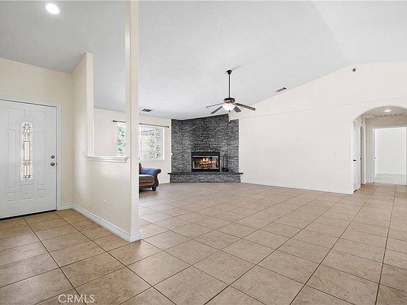Beautifully updated home with fully PAID SOLAR. This horse property home features include 4 spacious bedrooms three of them with walk-in close, 2 full baths, 2390 sq ft of living space, three car attached garage & laundry room with sink. Beautiful Spanish Tile in the patio. Very large 2.19 acre fenced land. Nice front porch & large covered patio at the back. Split floor plan provides privacy. High vaulted ceilings and gigantic living room with beautiful fireplace. This home has new interior paint throughout, new laminate flooring in all bedrooms, Enormous Kitchen with beautiful tile counter top and back-splash. All bedrooms are exceptionally larger and can fit king size beds. Bedrooms also have walk-in closets. Hallway bathroom has custom tile flooring, Master bedroom has high ceiling with huge walk-in closet. Master bathroom has custom tile flooring, double sinks, JETTED bath tub & separate shower. Separate laundry room has larger cabinetry & sink.