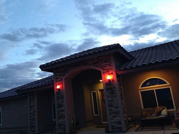 .Home with 4 bedroom 3.5 bath horse property on 2+ level acres. Spacious split floor plan with 10 ft coffered ceilings, 3 car garage, tile roof, tile floors, granite countertops in all bathrooms and kitchen, inside laundry room.Large master bedroom with french doors and large master bath.