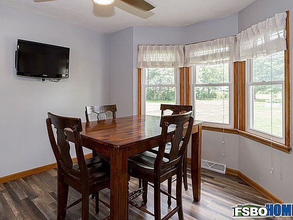 Beautifully updated ranch in Edgington, IL, on a level almost-half-acre lot, close to Rockridge Jr High/High School. The main-level features three bedrooms, a newly remodeled full-bath, and new luxury vinyl plank flooring throughout. Spacious and bright kitchen with laminate counters, tiled backsplash, stainless steel appliances, pantry, breakfast bar, and informal dining. The mostly finished basement boasts a huge rec room, bar room, full bath, storage area and laundry room. Outside you'll find a treated wood deck, porch and patio overlooking the quiet backyard, a storage shed, garden, and attached 2-car garage. (All measurements are approximate - Buyer/Agent to verify.)