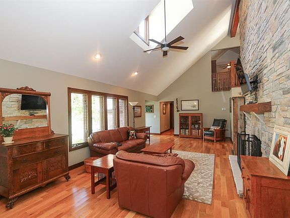 Spectacular Ranch Home with Picturesque 5 Acre Lot/Private Wooded Location! Attn to Detail, Design & Immaculate Condition! Does this check off your criteria? Gourmet kitchen/Granite/Stainless Steel App/Custom Amish Cabinets/ Lg Wall Windows w/Fabulous View, Wonderful Hardwoods Thru Out, Cathedral Ceilings, 2 Story Stone Fireplace, Charming 4 Seasons Room, Loft w/Full Bath, Low Cost Geothermal HVAC, Fenced Yard, To Die for Laundry Room, Basketball Pole, Oversized 2 Car Garage/3rd Garage in LL, Newer Barn 30X60 w/Loft/Concrete Floor/Electric, Walton Verona School District! Will Not Disappoint!