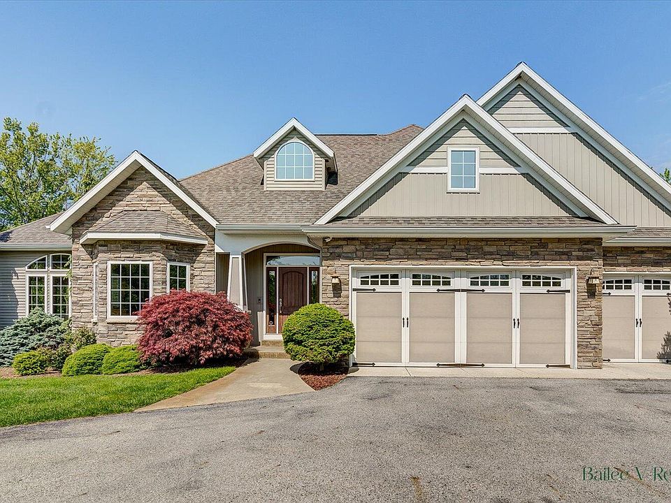 The home in Byron Center you have been waiting for! From the layout to the smart home and energy efficient amenities, this custom ranch home was well thought out and well maintained. This home offers in floor heating throughout the entire home, smart home automation, automatic blinds throughout entire main level and downstairs living space, a high velocity air conditioning system, an energy efficient whole house fan, electric car charger, intercom ability throughout the home, and a sound system for upstairs, downstairs and outside. The list truly goes on with a full kitchen upstairs and downstairs, as well as a washer and dryer on both levels, central vacuum system, and a natural gas automatic generator that powers the whole home automatically during a power outage. Continue reading for more details, as well as reference the "Notable Features" document for a full list. Starting on the main level, you will be greeted with a spacious entry way and closet. The entrance is nothing short of stunning as it captures the beautiful stairway and views of the backyard. The kitchen offers lots of cabinet and counter space, as well as a second sink in the island. Also featured in the kitchen area is a walk in pantry, under cabinet lighting, built in desk/nook, room for dining table, as well as access to the back deck. Viewed from the kitchen, you will see the formal dining area and spacious living room. The living room feels grand not only due to the size, but with the tasteful step down and stone gas fireplace that spans from floor to ceiling. Off the living room is the second bedroom on the main floor with an eye capturing trayed ceiling accent. Heading down the hallway you will see a built in bookshelf, full bathroom with a linen closet, and the garage entry area that provides a built-in storage bench and two additional closets. Pass through the french doors into the spacious primary bedroom that offers roughly 500 sq ft. This bedroom is a true owners oasis with the gas fireplace feature, trayed ceiling accents with colorful and diming light features, two separate walk in-closets with built-in drawers, a double vanity, tile shower with a transom window feature, and access to a private deck area. The laundry room can be accessed from the primary bedroom as well, which provides a sink and cabinets. Moving downstairs, there is a full kitchen with an abundance of cabinets that has a center island eating area and a built in desk/nook. Basement further provides a large living area with built ins and automatic blinds that can be programmed to turn the lights on or off based on whether the blinds are open or closed! The game area has ability to hang another TV with cable and data wiring ready for hookup, which would make for a great sports party while you utilize the built-in speakers to play the sound throughout. The downstairs bedrooms connect with a bathroom that provides two sinks and a separate room for the shower. There is an additional room that can be used as a game or workout room as desired. You can access the basement through separate stairs as well from the outside. The three stall garage has a polished concrete floor with drains, gladiator cabinets and bench, hanging racks throughout, and a water spigot hookup. Making your way outside, whether you choose to walk around the home or utilize the walk out access downstairs, you can enjoy the poured patio, the pool, the sports court, or enjoy a fire at the built-in natural gas stone firepit. Schedule your private showing!