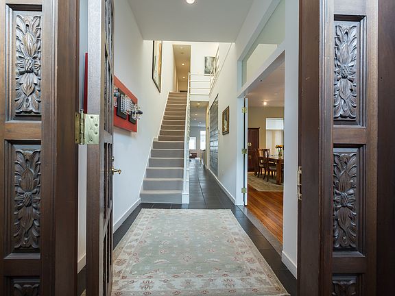 Boasting over 4,300 square feet and a large lot, this immaculate residence offers a unique combination of light, style, and space. Beyond the classic façade, the interior of the property is a contemporary masterpiece that has grand living spaces and incorporates minimalist, modern flair. The home features recessed lighting and other architecturally pleasing details throughout. Enter the residence through the handsomely-carved solid wood doors and continue to the open living and dining room. This space features original wood floors, a fireplace, and attractive built-ins. Continue into the recently-renovated gourmet kitchen with top of the line Thermador appliances, black marble countertops, ample cabinet space, a cooktop island, and a breakfast bar. The large kitchen opens to a family room with another fireplace and then to an inviting sunroom. The open living area continues outside with a gorgeous deck and a large well-lit, fenced-in patio that's great for entertaining.The second level of the home features a luxurious master suite with clerestory windows and incredible closet space. The master bath includes dual vanity sinks, a large shower with frameless glass door, and a hidden washer/dryer. In all, there are four bedrooms in the main house, three crisp, updated bathrooms, and a powder room on the main level. Accentuating all of these livable spaces is the presence of light. There are four large skylights throughout the home, oversized windows in almost every room, and morning light shines on the patio, deck, and sunroom. Completing this residence are threerear parking spaces and an attractive one-bedroom lower-level apartment with its own private patio and legal Certificate of Occupancy
