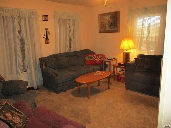 This is a MUST SEE INSIDE. No Curb appeal but inside is adorable and clean 4 bedrooms, 1.5 baths; could be a 2 family. Large rooms with tons of storage. Newer furnace and hot water tank. HEAP fully insulated the home in 2012. Newer refrigerator and stove (2012).