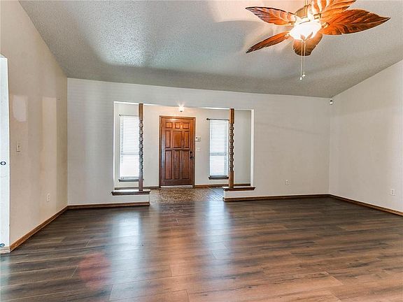 Come see this charming property in Midwest City close to Tinker Air Force Base! This three bed two bath home has plenty of space and storage ready to be made into your own. Upon entering this property, you'll notice a large living area connected to the kitchen and dining space. The hallway right off the entryway leads to the primary suite and the two spare bedrooms. The primary suite features its own bathroom and vanity with a large mirror and a large window for plenty of natural light. The two spare rooms also feature windows that allow natural light in along with spacious closets. These would make perfect bedrooms or utilize as an office or craft space! Wood accents can be found throughout the home adding warmth to each room. The backyard is spacious enough for all your needs and features a shed for extra outdoor storage. Come see this property soon!