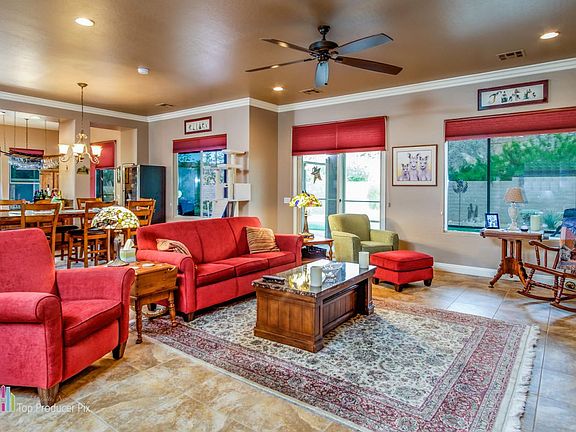 Great Primrose Model! This is a 2 Bedroom with Den, 2.5 Bathroom home with 2,659sq.ft and a 3 Car Garage. The Greatroom in this house is huge! Built-in custom entertainment center, Ceiling fans, 18"x18" ceramic tile. Kitchen has 1/2' bullnose Granite Countertops with custom backsplash and under cabinet lighting. All Appliances are Stainless Steel including Refrigerator and are included in sale. Kitchen has Big Pantry and Peninsula Counter. Washer and Dryer are included. Utility Room has a Soaking Sink and Extra Cabinets. Extra storage or another Pantry can be found off the kitchen. Large Master Bedroom has Tray Ceilings with additional Can Lighting and Ceiling Fan. Master Bathroom has a Soaking Tub and Tile Shower. Large Walk-in Closet. 2nd Bedroom is also Large and has Tray Ceilings with Fan. Many upgrades and extras included! Back Patio is full length of house and has view of Flat Top Mesa. Part of Patio is Screened. Backyard has Putting Green and was Custom Designed with Brick Pavers. Home has built-in Water Filtration system... so much included in this home! Sun City Mesquite is a 55+ Community and Pioneer Center (Recreation Center) has pools, clubs, workout equip. and more.