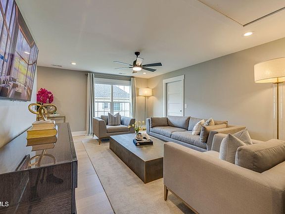 Highly sought-after Chestnut Cove-built in 2022, modern design, quality finishes, and upgrades-features wide-plank hardwood floors, a cozy gas fireplace, and oversized designer ceiling fans,The living room flows out to a covered deck overlooking the professionally landscaped and fully fenced backyard. The kitchen is a true centerpiece, boasting marbled quartz countertops, a large central island, shaker-style two-tone maple cabinetry, an induction range and a sleek Samsung Bespoke 4-door refrigerator with beverage center designed for both function and flair. The Luxurious First-Floor Primary Suite, complete with a custom accent wall, wall-mounted bedside lighting, and a spa-like en-suite bath featuring a soaking tub, walk-in shower, and an oversized walk-in closet. Upstairs, hardwood flooring to continue the high-end feel.