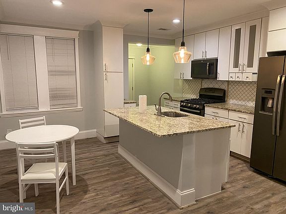 Remodeled attached row house with 3 br 1.1 ba, Gourmet kitchen with granite counter tops, island with seating, table space kitchen, Living room with crown molding, recessed lights, HWF throughout, Full bath with skylight, Fenced rear, parking pad for 2 cars, Front porch, new windows, New roof. Ready for you to make this your home.