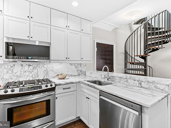 Rarely available 2BR+Den/2BA Penthouse on 2 levels with private roof deck and 1-car parking in boutique building. This spacious and light-filled condo has been recently refreshed with new paint throughout and kitchen, HVAC, and laundry updates. The main level has an open layout for living and dining with a wall of windows letting in tons of natural light. This bright white kitchen has SS appliances, gas range, new dishwasher, marble countertops and backsplash, glass-front cabinets and ample storage. The hallway leads you to two spacious bedrooms - the primary has an en-suite bath. The 2nd bedroom is perfect for any guest and there is a full bathroom directly across the hall. The in-unit washer and dryer are also located in the hall for easy access. A spiral staircase leads to the loft/den area with windows on 3 sides, perfect for a home office, additional sleeping area or home gym. Directly outside of the loft is your own private roof deck with city views, perfect for summer parties. This unit comes with 1 of only 4 assigned/deeded parking spaces. Pet-friendly building. The location is ideal - located right between 13th St and the bustling 14th St. Corridor, with its renowned restaurant and shopping options. The closest Metro Station (Green and Yellow Line) is only 0.5 miles away. The home is move-in ready. Don't miss this one!