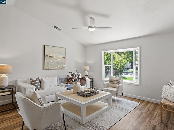 Check out this fantastic single-story home at 1323 David Ln. Concord, CA 94518. It boasts four bedrooms, three bathrooms, and 2,469 sqft of living space, including a bonus room. Tucked away down a peaceful lane, the property sits on a large flat lot in a prime commute area. Step inside to find a spacious living room and dining area with vaulted ceilings, creating an inviting and open floor plan. The modern eat-in kitchen features elegant subway tiles, grey and white cabinets, and charming lighting. There's plenty of storage space to keep everything organized. This home has desirable amenities such as central AC/heating, stainless steel appliances, vinyl plank flooring, Tesla solar, Tesla backup batteries, and new interior paint. The primary bedroom includes a walk-in closet and a lovely ensuite bathroom with a large shower and a separate jacuzzi tub, offering a perfect retreat. Two additional bedrooms share a newly remodeled bathroom with a modern vanity and subway tile surrounding the bathtub. Outside, the large flat and spacious backyard is a private oasis with well water, a brick patio, lush grass, trees, and a dog run. Conveniently located near Walnut Creek/Pleasant Hill border, you're close to shopping, BART, and freeways. DON'T MISS THIS!