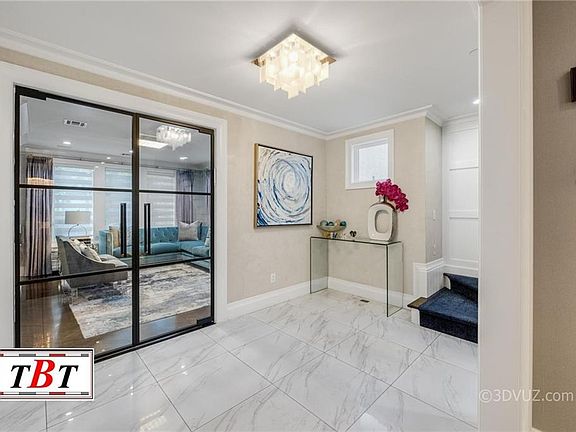 Welcome to an exquisite modern luxury residence situated on a coveted block in Prime Midwood. This state-of-the-art home boasts exceptional interior design and the finest craftsmanship throughout. Upon entering, you are greeted by a sunlit marble foyer that seamlessly transitions into the formal living and dining areas, featuring custom wooden flooring and elegant Venetian painted walls. The main level also offers a gourmet chef's kitchen, outfitted with top-of-the-line stainless steel appliances and a spacious island, ideal for culinary enthusiasts. Adjacent to the kitchen is a wide, comfortable den, perfect for relaxation, and a stylish powder room for added convenience. The second floor features four bedrooms, including a grand primary suite with an en-suite bathroom, a large walk-in closet, and ample additional closet space. Three generously-sized bedrooms share this level, with one offering an en-suite bath and another full bathroom located off the hallway. The third floor adds two more bedrooms and a full bath, providing ample space for guests or extended family. The beautifully finished basement expands the living space further, offering an open family recreation area, substantial storage, a laundry room, two guest rooms, and 1.5 bathrooms. Additional amenities include a home smart system, central air, a private driveway, and a serene backyard, combining modern luxury with practicality in one of the most sought-after neighborhoods.