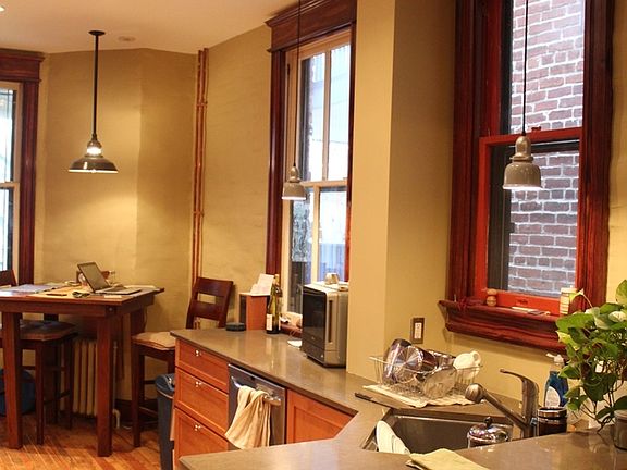 Available Apr 06, 2015. - This fully furnished 4 bedroom, 4 bathroom house on 3 levels in Capitol Hill is ideally located steps from Lincoln Park and the Capitol. This property features an open floor plan in the living room, dining room and kitchen with exposed brick and high ceilings. The upgraded kitchen has stainless steel appliances, granite counter tops and new high end cabinetry. The spacious living/dining area is beautifully appointed in a rustic, traditional style. The top floor features the master bedroom and master bathroom and 2 additional bedrooms that share a 3/4 bath. The back bedroom has its own private balcony. The house has a fenced backyard with a private patio and a 1 car garage. The property includes central air conditioning and a washer/dryer in the basement, accessed through the back of the house. Restaurants, shopping, parks, schools and entertainment are blocks from the front door and the Eastern Market Metro Station (orange and blue lines) is a 14 minute walk away. Parking for 1 car is available in the home's garage. Walk Score: 74, Transit Score: 74, Bike Score: 95.
