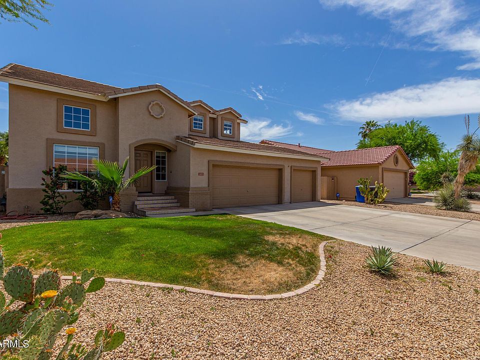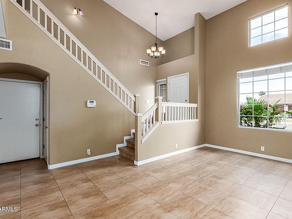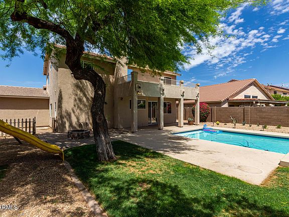 Great central Chandler location. Lots of living space options with both living and family rooms. Great vaulted ceilings let in lots of natural light. Kitchen features modern white cabinetry, granite counters, pantry and double oven slide in range. Updated electric fireplace in family room. Tile in all living areas! One bedroom and full bath downstairs. Master has a balcony overlooking the backyard. 2 additional bedrooms upstairs share another full bath. Upstairs laundry is convenient! Newer paint inside and out. Extra storage in under stairs closet. 3 car garage. Backyard is complete with firepit, pool, covered patio and grassy play area. Super location is just around the corner from Pima Park with playground and lots of walking paths.